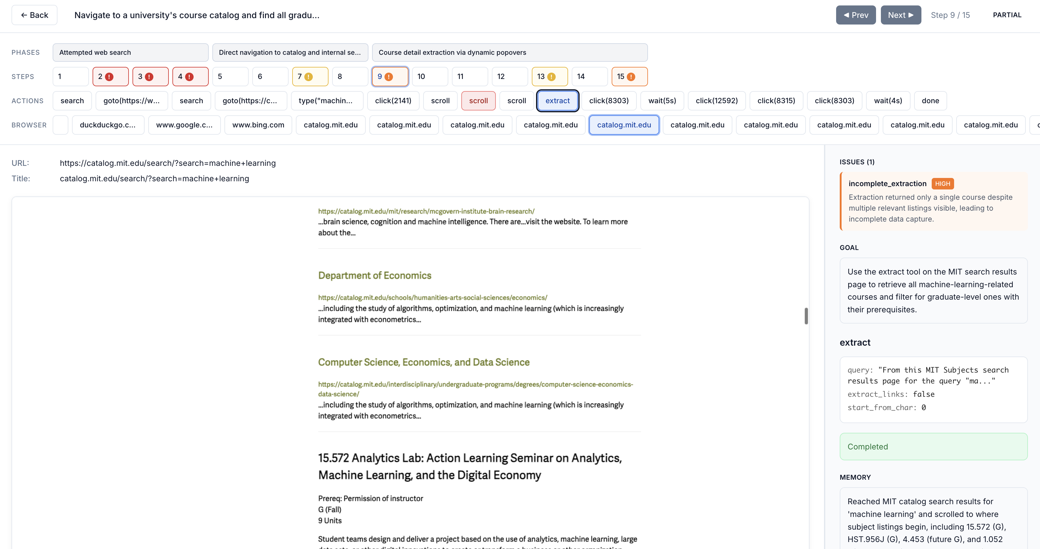 Drop in your agent's execution log. We parse browser-use format out of the box.